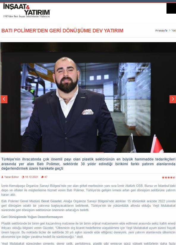 Geri dönüşüme yaptığımız önemli yatırımların yer aldığı basın haberleri